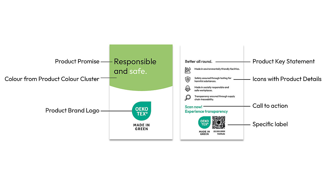 Directly on the OEKO-TEX® MADE IN GREEN labelled product or on marketing materials that promote the OEKO-TEX® MADE IN GREEN labelled products such as brochures, websites, etc.