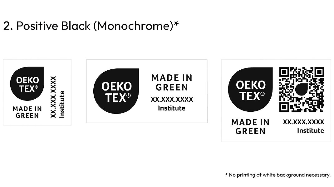 Every label layout can be downloaded from myOEKO-TEX® by the label owner. Any colour variations, including monochrome versions, not shown here, must be submitted to OEKO-TEX® for approval.
