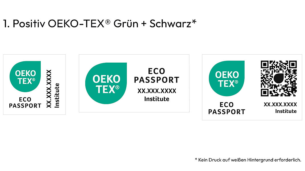 Jede Layout-Version steht über den Label Editor im Kundenportal myOEKO-TEX® zum Download bereit. Jede andere Farbvariante muss bei OEKO-TEX® zur Genehmigung eingereicht werden.