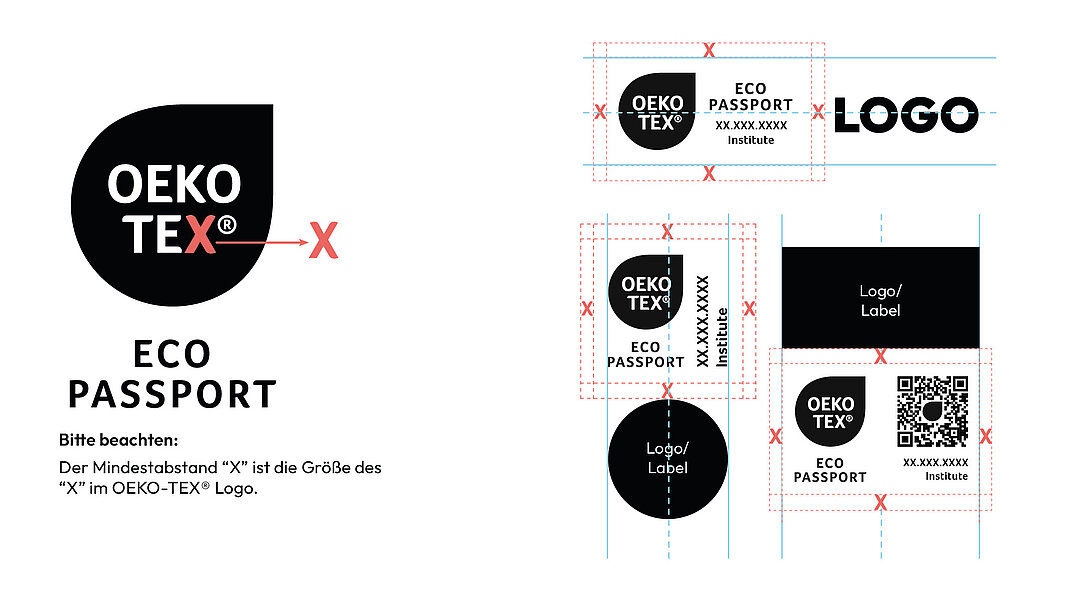 Der Mindestabstand “X” ist die Größe des «X» im OEKO-TEX® Logo.