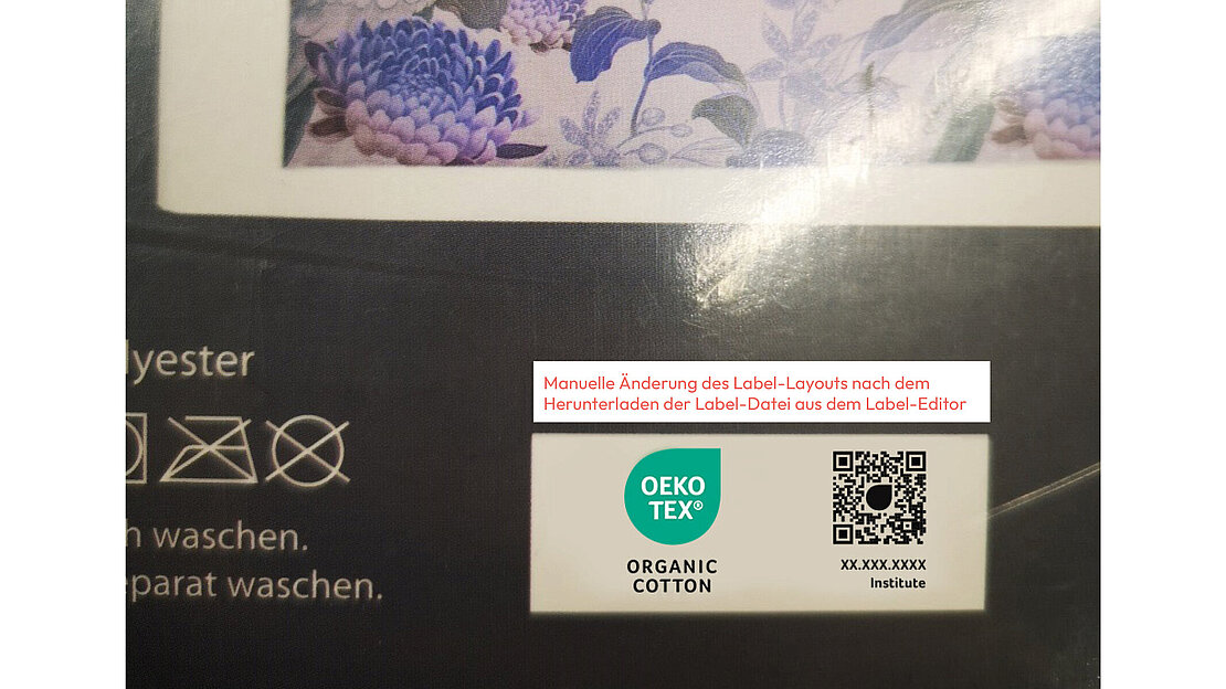 Jedes Label-Layout kann im Label-Editor innerhalb der myOEKO-TEX® Plattform durch den Labelinhaber generiert und heruntergeladen werden.