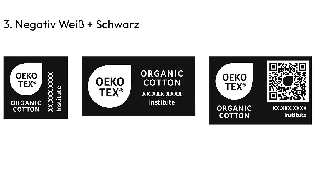 Einfarbige Versionen außerhalb des Schwarz/ Weiß-Spektrums müssen vom OEKO-TEX® Sekretariat genehmigt werden.