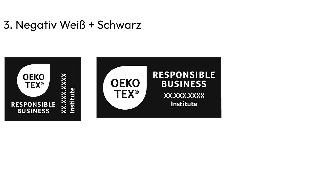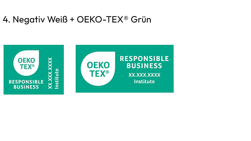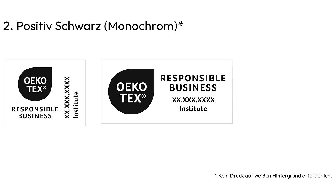 Einfarbige Versionen außerhalb des Schwarz/ Weiß-Spektrums müssen vom OEKO-TEX® Sekretariat genehmigt werden.
