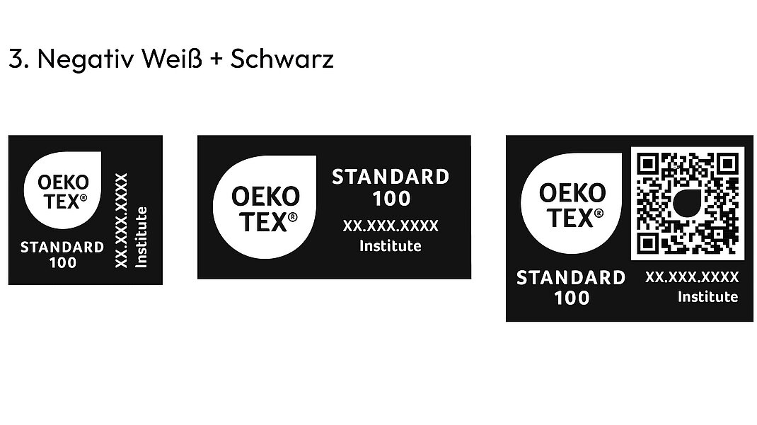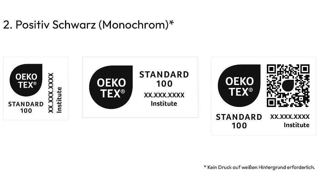 Einfarbige Versionen außerhalb des Schwarz/ Weiß-Spektrums müssen vom OEKO-TEX® Sekretariat genehmigt werden.