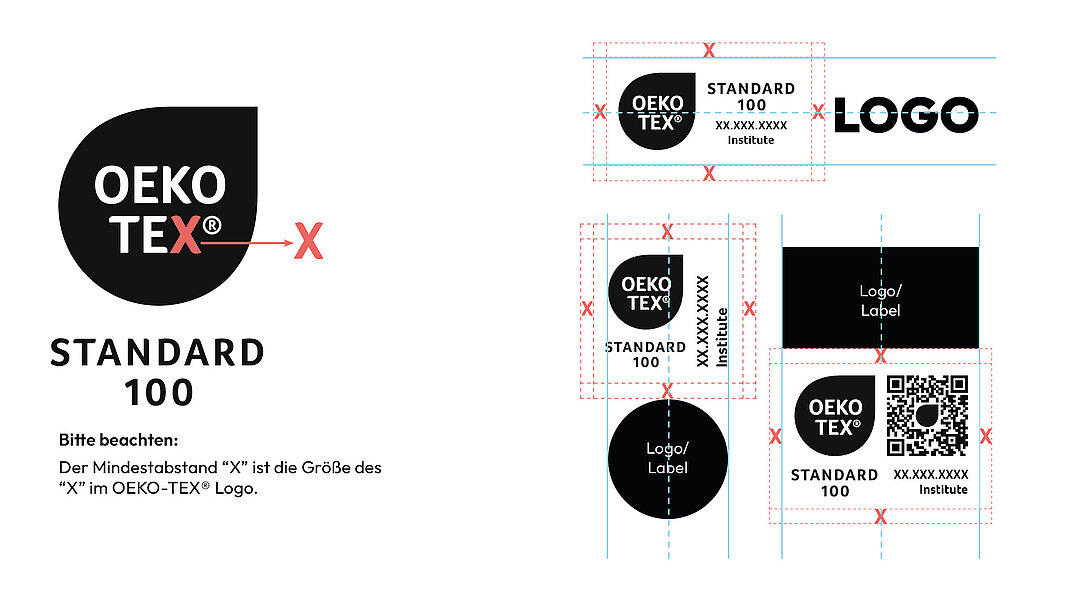 Der Mindestabstand “X” ist die Größe des «X» im OEKO-TEX® Logo.