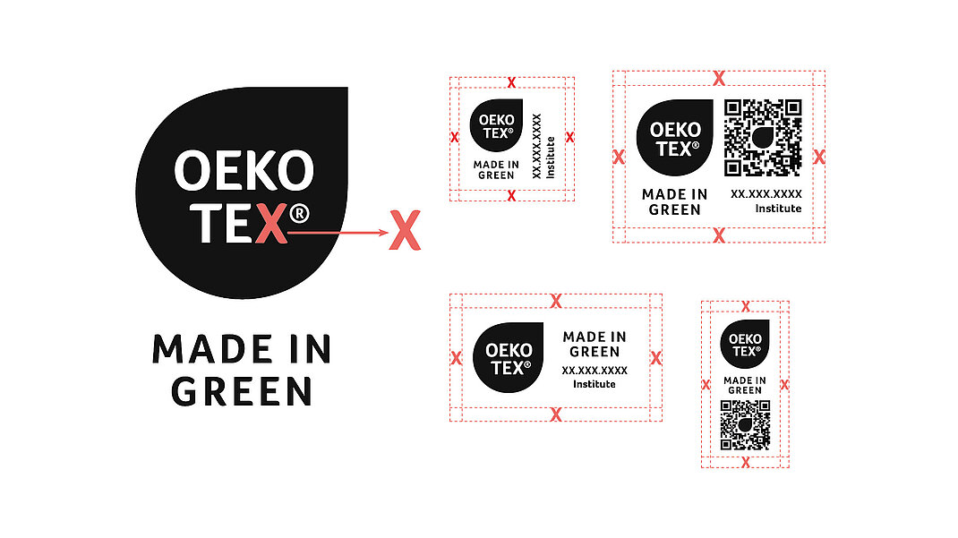 Minimum safe zone 'X' is the size of the 'X' in the OEKO-TEX® Logo.
