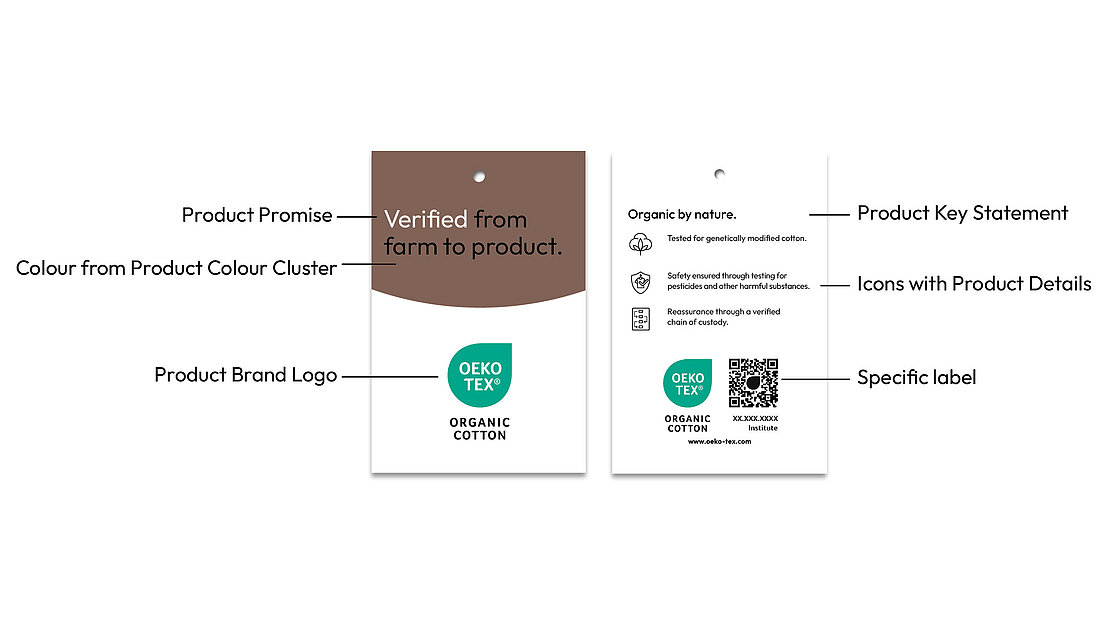 Directly on the OEKO-TEX® ORGANIC COTTON certified product or on marketing materials that promote the OEKO-TEX® ORGANIC COTTON labelled products such as brochures, websites, etc.