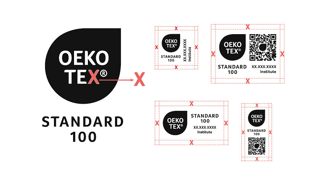 Minimum safe zone 'X' is the size of the 'X' in the OEKO-TEX® Logo.