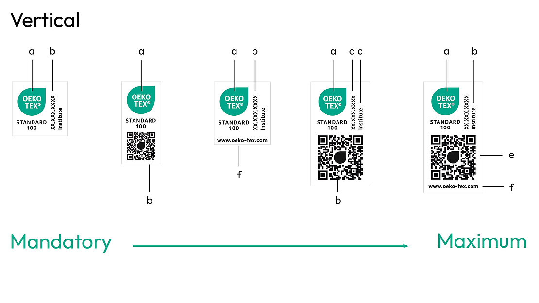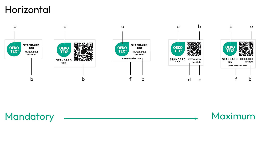 Every label layout can be downloaded from myOEKO-TEX® by the label owner. Any colour variations, including monochrome versions, not shown here, must be submitted to OEKO-TEX® for approval.